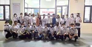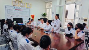 Tham gia chương trình có đại diện Ban Giám hiệu Nhà trường – cô Ngô Thị Yến – Phó Hiệu trưởng cùng 20 sinh viên đang tham gia khóa đào tạo. Tại buổi làm việc, đoàn đã được đại diện Bệnh viện giới thiệu tổng quan về mô hình quản lý, hệ thống chất lượng đang áp dụng như 5S, Kaizen, ISO, Lean…, đồng thời phổ biến các quy định an toàn trong quá trình tham quan, thực tập.